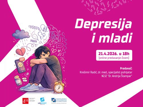 Online predavanje pod nazivom "Depresija i mladi" održat će se u utorak, 21.4.2026. u 18:00 h putem Zoom platforme.