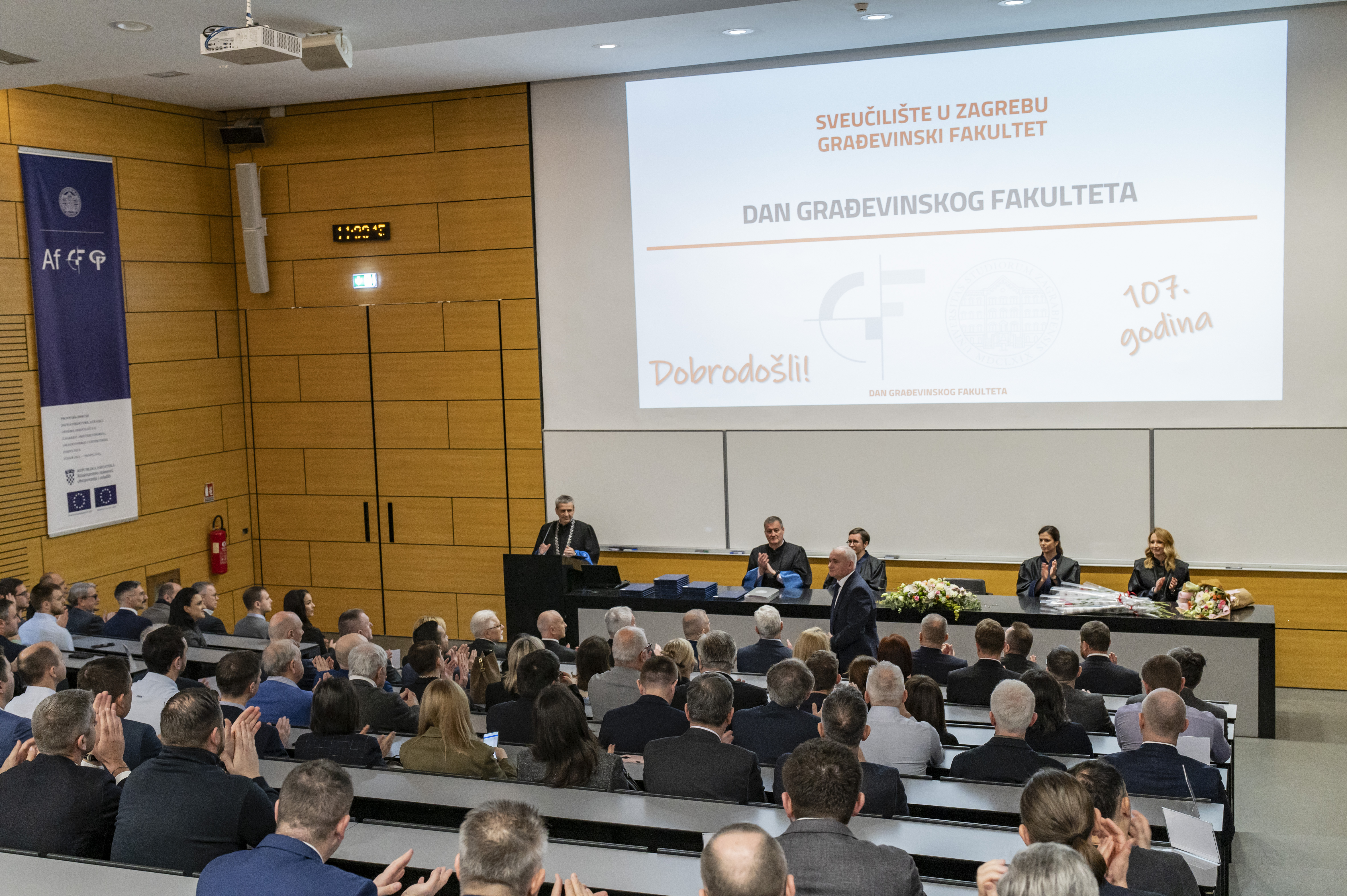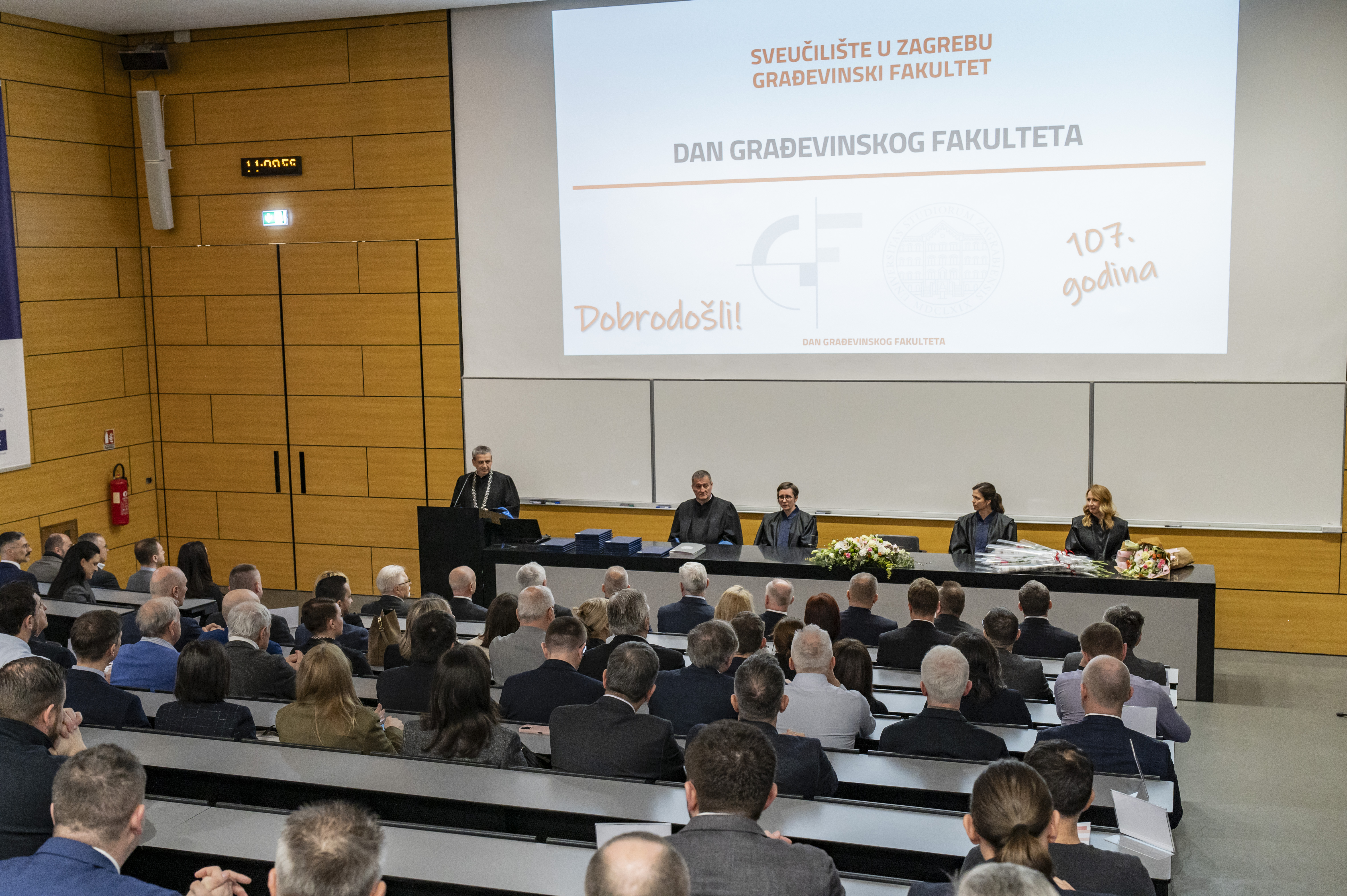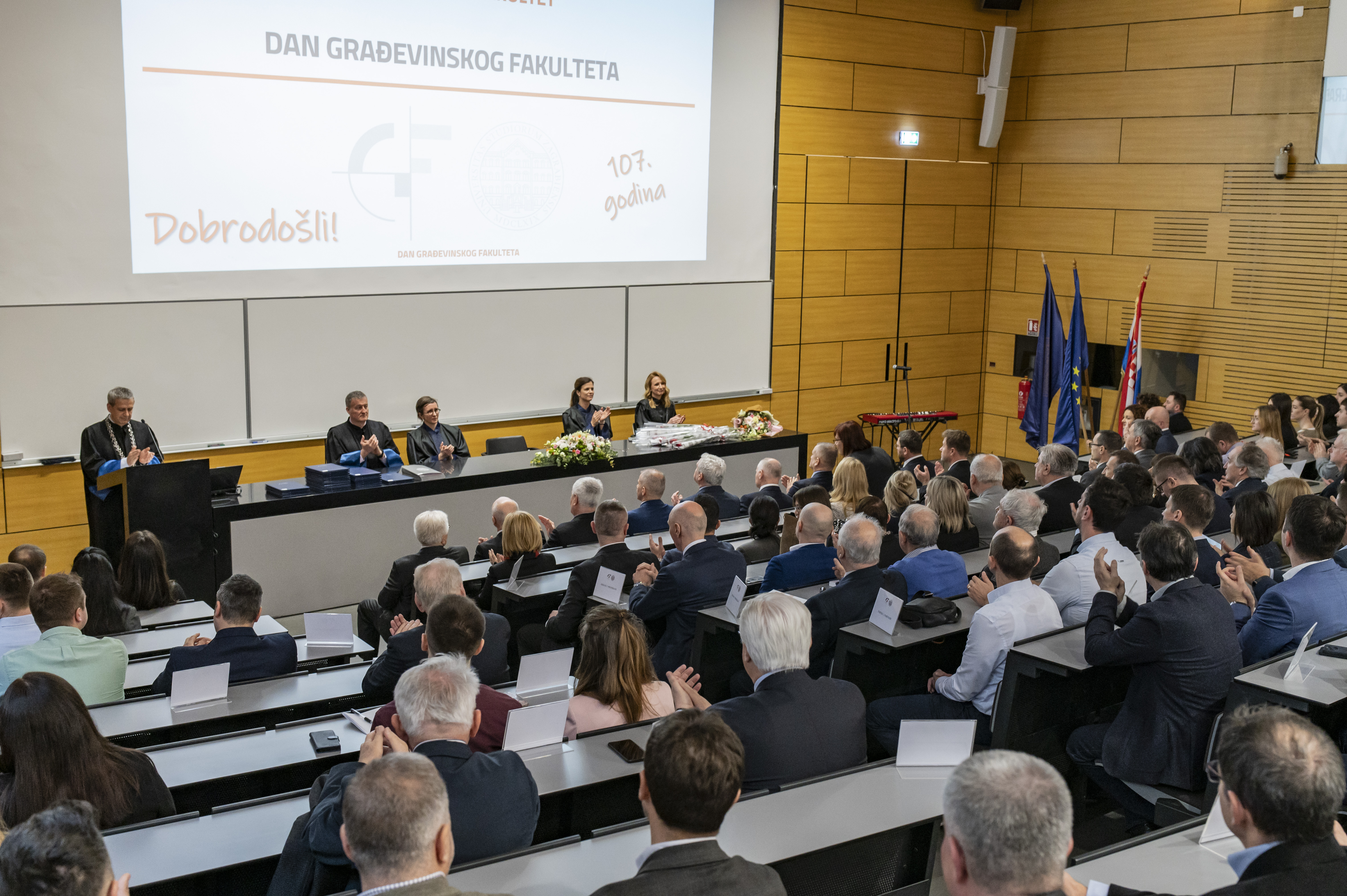 Svečanom sjednicom Fakultetskoga vijeća u petak, 20. veljače 2026. Građevinski fakultet obilježio je 107. obljetnicu postojanja. Sjednici su nazočili, visoki uzvanici, djelatnici fakulteta, studenti, dekani i prodekani s drugih sastavnica Sveučilišta u Zagrebu i drugih sveučilišta te predstavnici tvrtki s kojim fakultet uspješno surađuje. Građevinski fakultet, kao najstarija i vodeća institucija visokog obrazovanja u području građevinarstva u Hrvatskoj i regiji, i ove je godine potvrdio svoju ulogu središta znanja, inovacija i stručnosti.