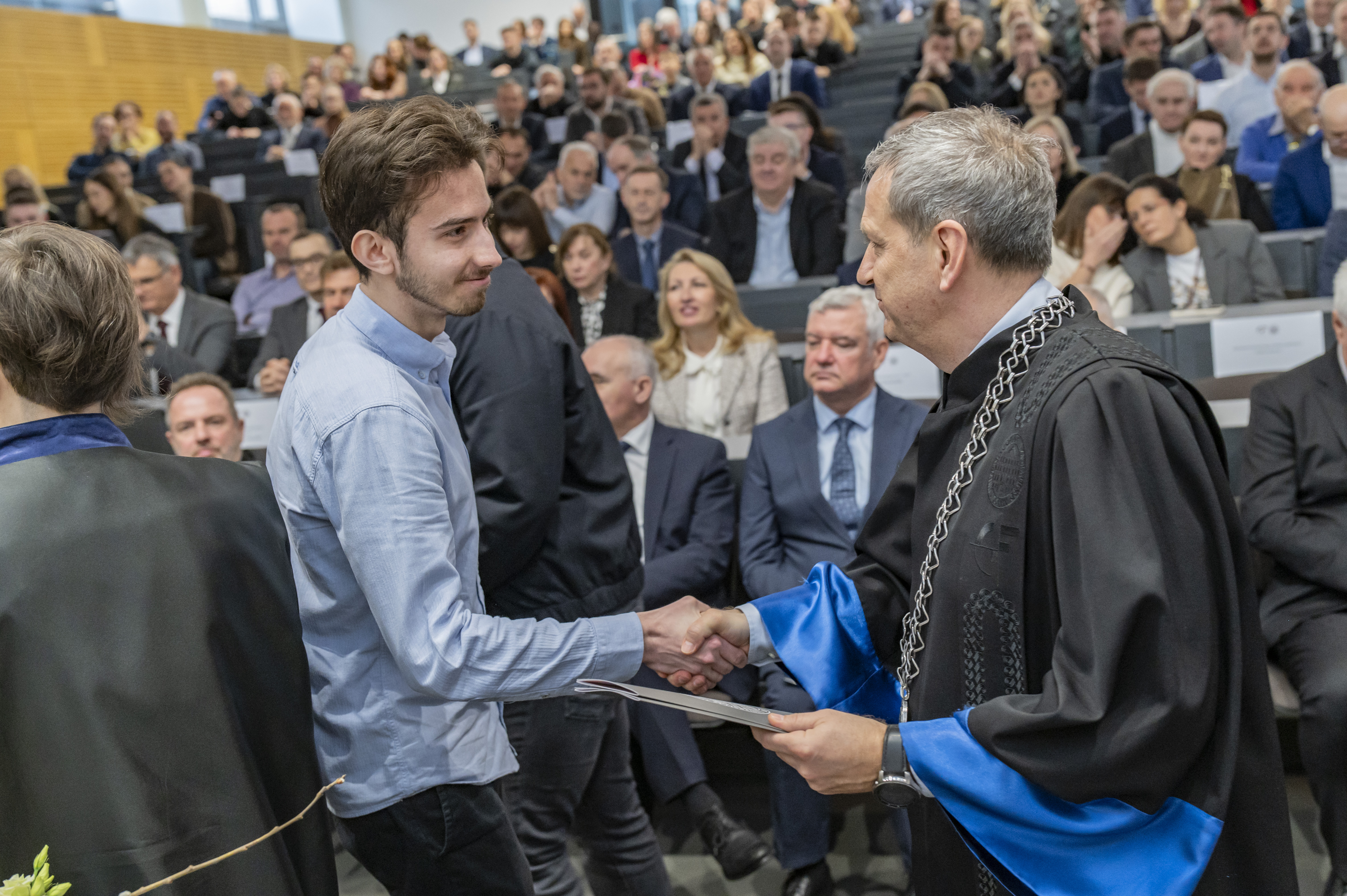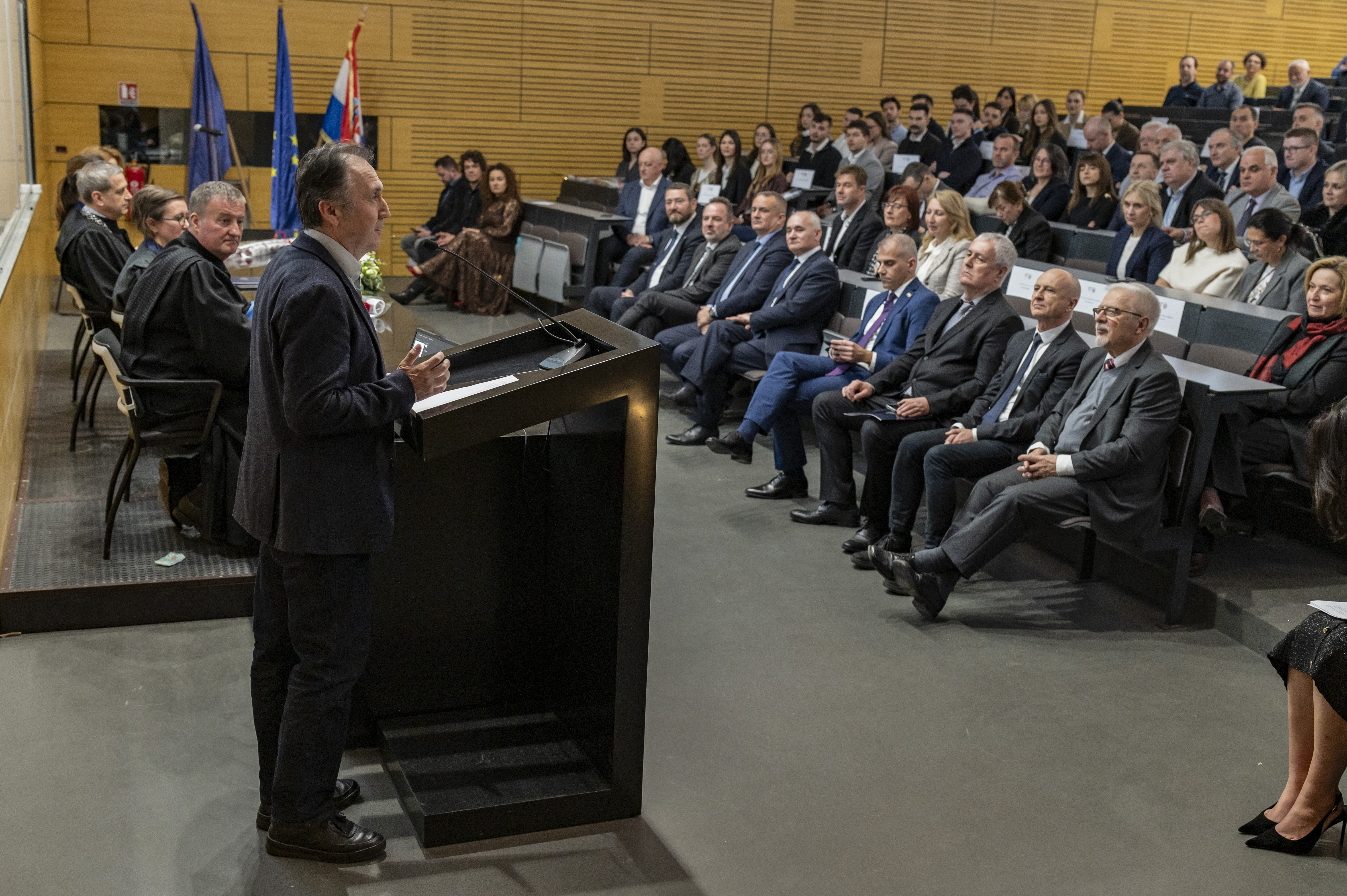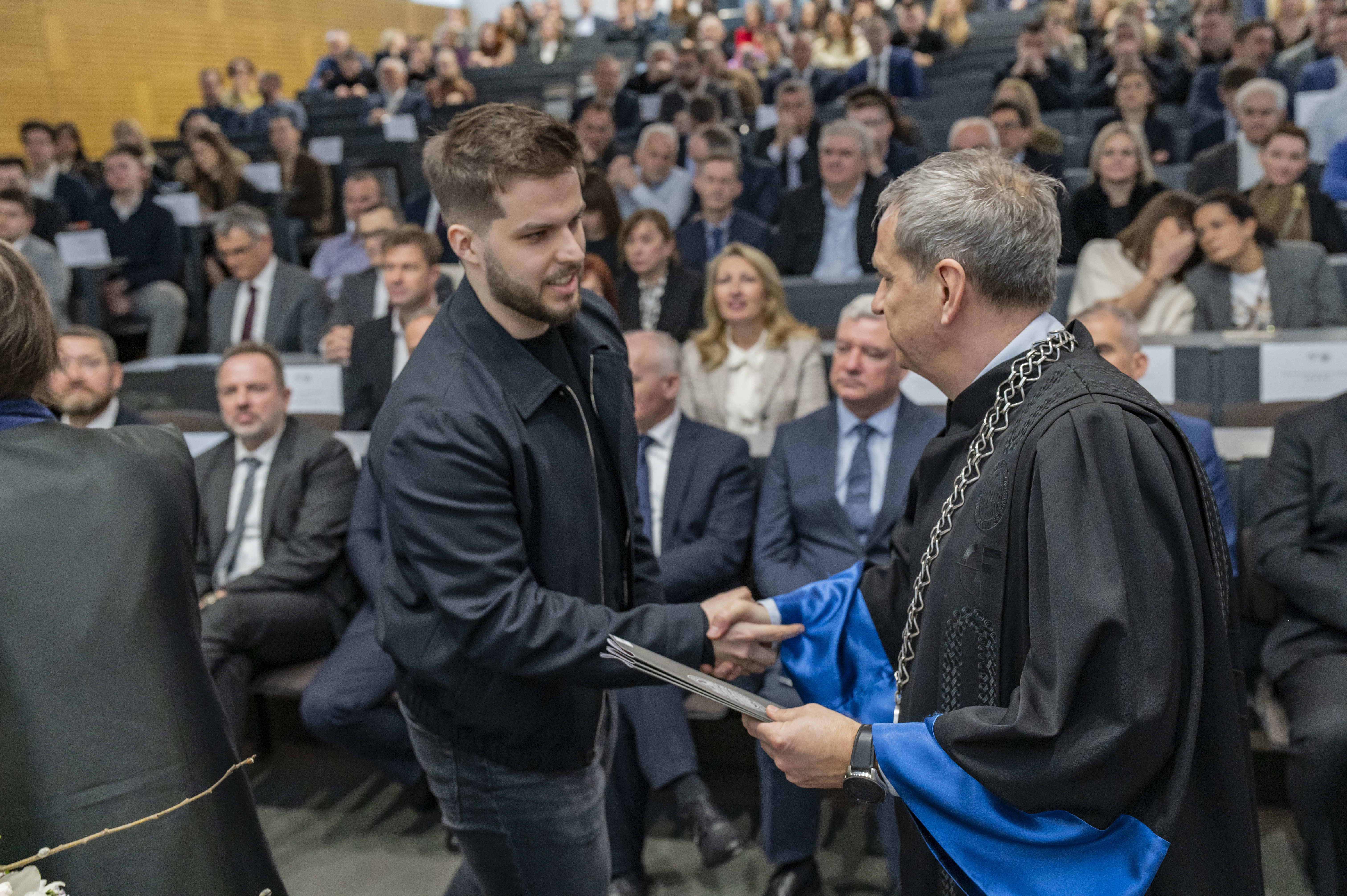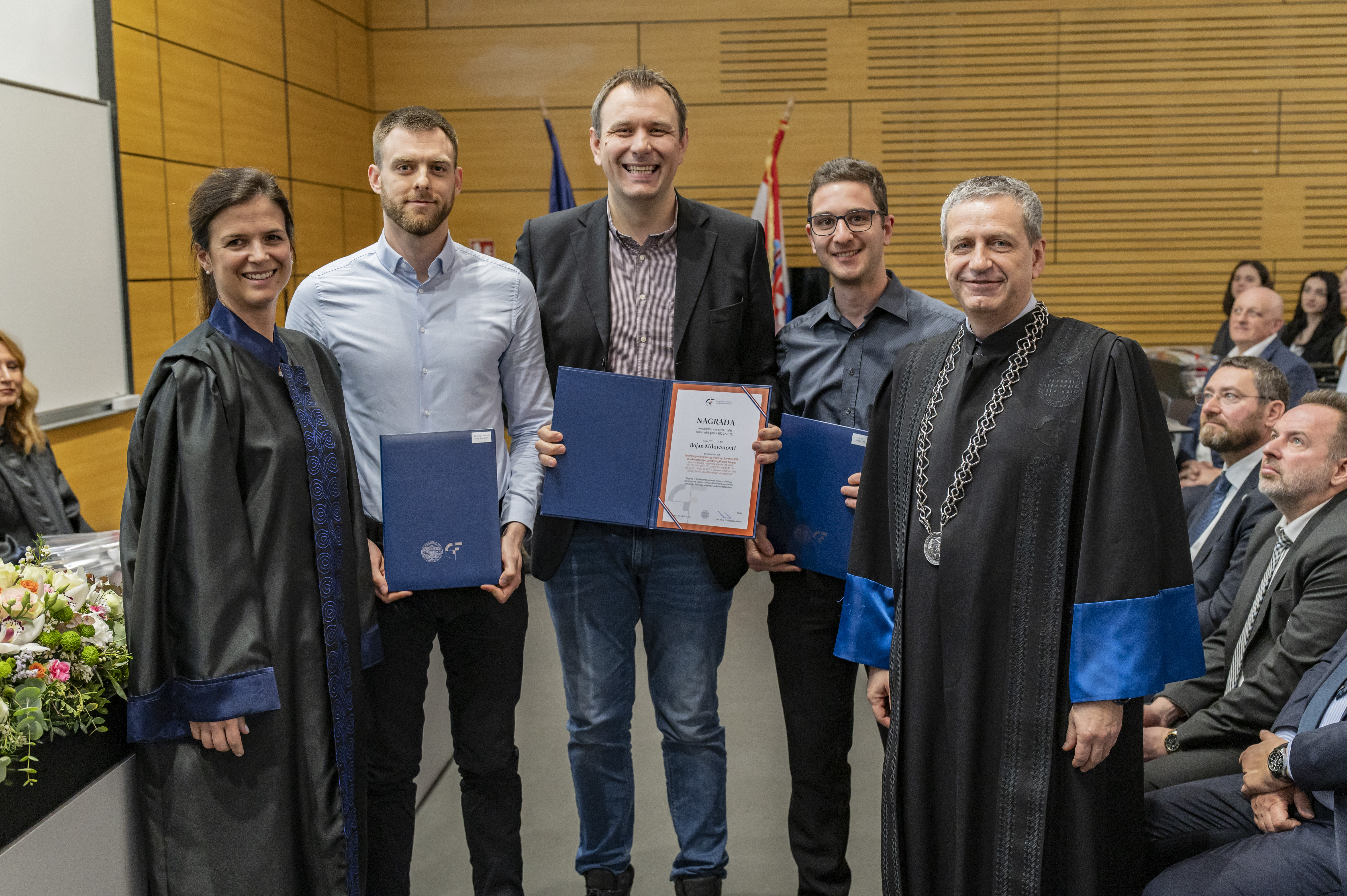 Završni dio sjednice bio je obilježen dodjelom priznanja najuspješnijim studentima, profesorima i partnerima iz gospodarstva, što je ujedno bio jedan od vrhunaca svečanosti, a u ime nagrađenih skupu se obratio prof. dr. sc. Meho Saša Kovačević.